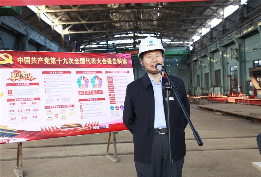 12月6日下午,廣西建工集團(tuán)黨委委員、副總經(jīng)理侯立林到冶建公司壓力容器制造廠鉚焊車間進(jìn)行學(xué)習(xí)貫徹黨的十九大精神進(jìn)工地、進(jìn)車間宣講報(bào)告。