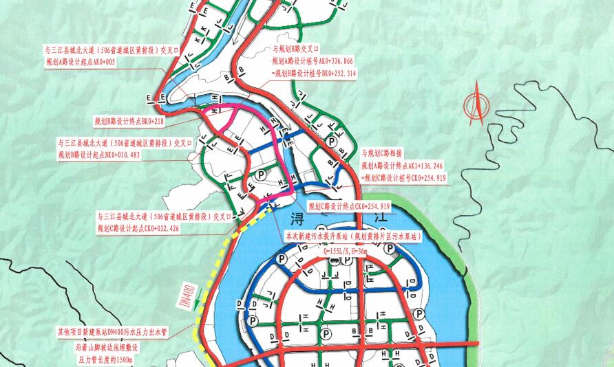 該項(xiàng)目位于柳州市三江侗族自治縣黃排片區(qū),結(jié)合規(guī)劃區(qū)發(fā)展的功能需求,圍繞著三江縣新三江中學(xué)學(xué)校地塊,規(guī)劃形成“一帶、一環(huán)、四心、五軸、七片”的城市結(jié)構(gòu)體系與“山、水、城、田、人”相融的組團(tuán)城市格局?!耙粠А敝缸詵|向西貫穿城區(qū)的潯江風(fēng)情帶,連接縣城多個(gè)片區(qū);“一環(huán)”是由潯江大道-侗鄉(xiāng)大道-河西老城西環(huán)線-宜陽(yáng)大道構(gòu)成的城市環(huán)線;“四心”分別是指潯江半島行政文體中心、河?xùn)|侗鄉(xiāng)民族文化中心、大洲島旅游活動(dòng)中心和火車南站客運(yùn)樞紐中心;“五軸”分別是指連接到城市環(huán)線的桂三高速公路連接線、209 國(guó)道周坪段、321 國(guó)道周坪段、龍吉大道和三柳高速公路程村連接線;“七片”則分別是指黃排片區(qū)、河西老城片區(qū)、河?xùn)|新城片區(qū)(含潯江半島)、周坪片區(qū)、大洲島片區(qū)、龍吉片區(qū)和火車南站片區(qū)。