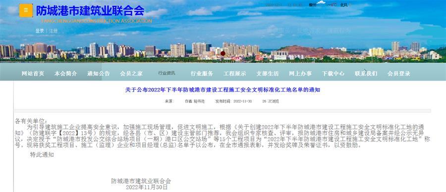 近日,冶建公司第五分公司承建的年屠宰45萬頭生豬項(xiàng)目工程總承包項(xiàng)目、寧明縣中醫(yī)醫(yī)院邊合院區(qū)(一期)項(xiàng)目、上思縣婦幼保健院整體搬遷項(xiàng)目,分別獲評(píng)南寧市、崇左市、防城港市“建設(shè)工程施工安全文明標(biāo)準(zhǔn)化工地”稱號(hào)。