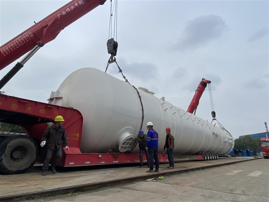 制造過程中,壓力容器制造廠在項目制造周期短、施工人力資源緊張的情況下,認真組織技術(shù)骨干進行施工,全力以赴順利按需完成了項目的交付任務(wù)。其中,空冷塔容積直徑4.2m,高(長)28.3m,重量約65噸;水冷塔直徑4.2m,長22.1m,重量約40噸。