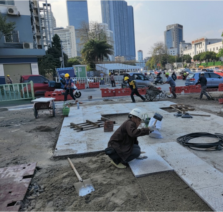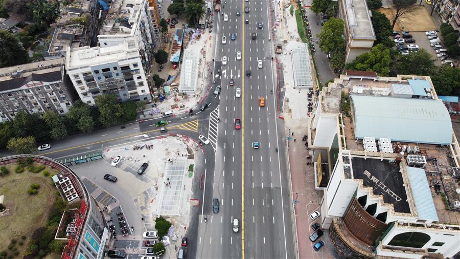 該工程于2022年1月4日開工建設,由于施工現(xiàn)場處于市中心地段,周邊車流、人流量大,施工場地狹窄,地下管線復雜,施工難度極大。為實現(xiàn)2023年春節(jié)開放通行目標,項目部積極協(xié)調各方力量,積極配合相關單位進行遷改、支撐保護,科學合理安排工序,在保證安全生產(chǎn)和施工質量的前提下,發(fā)揚“5+2”“白加黑”連續(xù)作戰(zhàn)精神,全力推進項目建設,截至目前項目僅剩一些收尾工作即可開通。