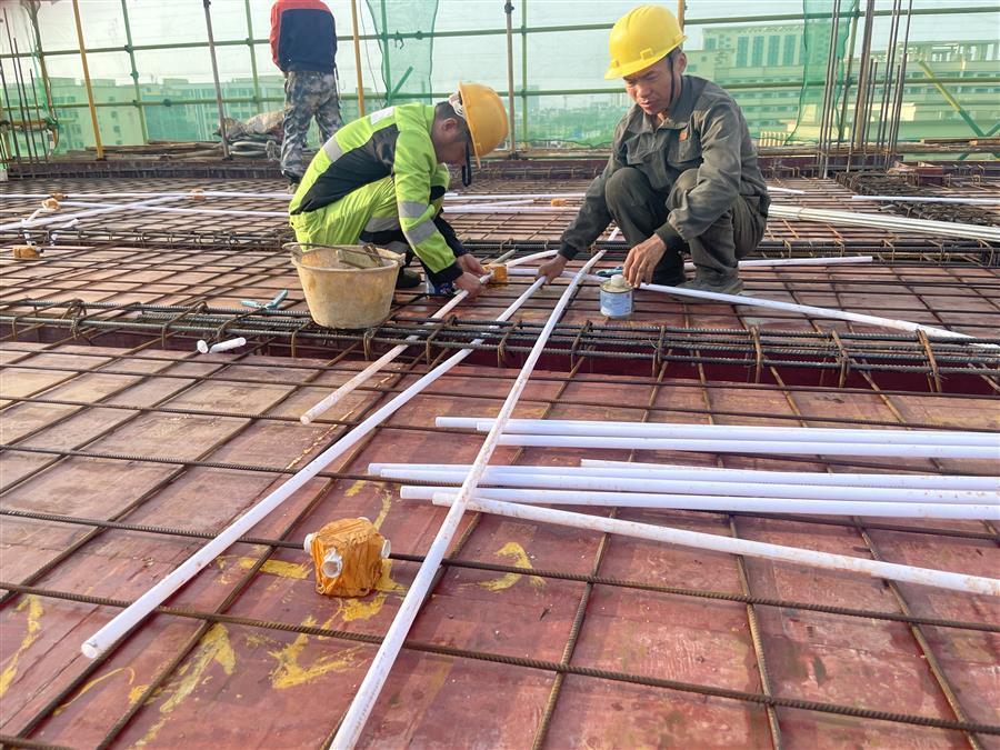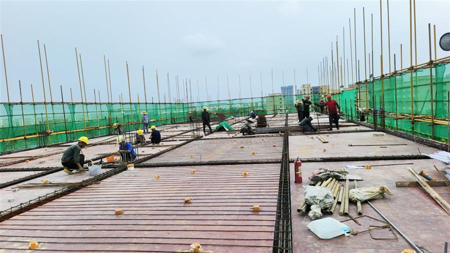 為搶抓項(xiàng)目建設(shè)黃金期,項(xiàng)目部組織全體管理人員堅(jiān)守崗位,進(jìn)一步優(yōu)化施工組織設(shè)計,嚴(yán)格管控施工安全、質(zhì)量,會同業(yè)主、監(jiān)理單位加班加點(diǎn)忙建設(shè),全力保障項(xiàng)目建設(shè)按照既定時間節(jié)點(diǎn)推進(jìn)。截至目前,已完成生產(chǎn)調(diào)度用房1-4層主樓框架施工和水泵房底板防水施工。