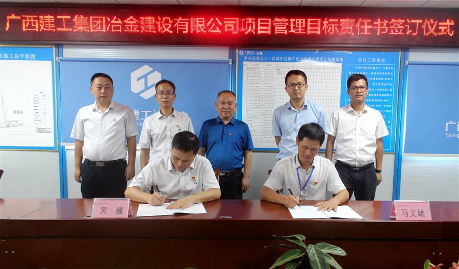 近日,公司項(xiàng)目管理目標(biāo)責(zé)任書(shū)簽訂儀式在象州縣城北片一區(qū)城中村棚戶(hù)區(qū)改造項(xiàng)目(一期)項(xiàng)目部舉行。公司副總經(jīng)理唐峰,總經(jīng)理助理、副總工程師陳冠東及公司相關(guān)處室、分公司負(fù)責(zé)人參加。