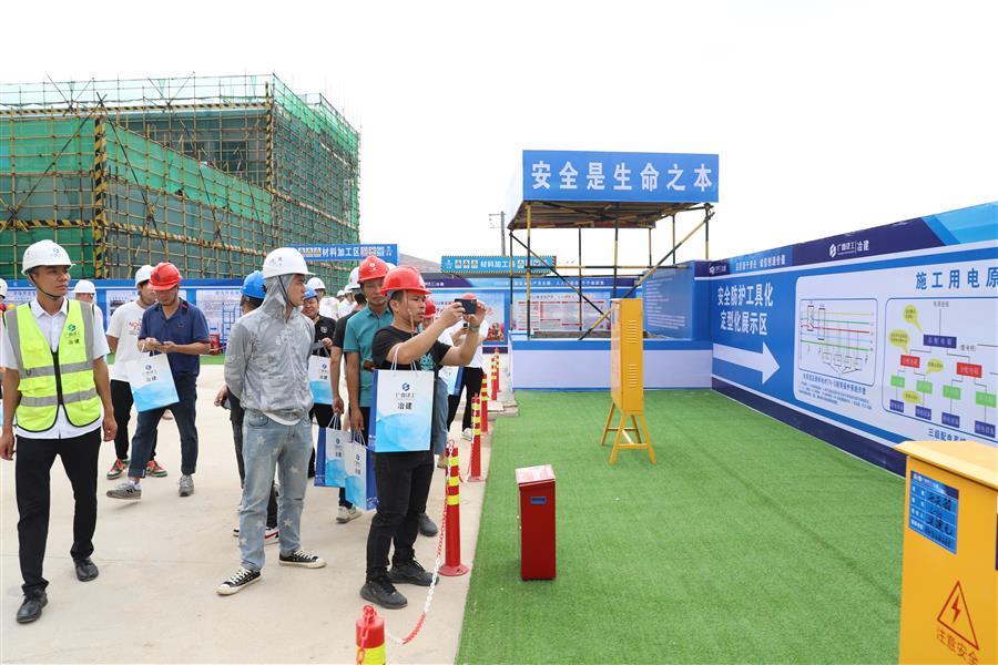 隨后,與會(huì)人員進(jìn)入項(xiàng)目實(shí)體進(jìn)行安全文明標(biāo)準(zhǔn)化生產(chǎn)現(xiàn)場(chǎng)觀(guān)摩,認(rèn)真聽(tīng)取講解員對(duì)安全文件宣貫長(zhǎng)廊、安全管理標(biāo)準(zhǔn)化展示區(qū)、安全防護(hù)工具化、定型化展示區(qū)、質(zhì)量樣板展示區(qū)等方面的介紹,并詳細(xì)了解項(xiàng)目建設(shè)的管理亮點(diǎn)和特色做法等。