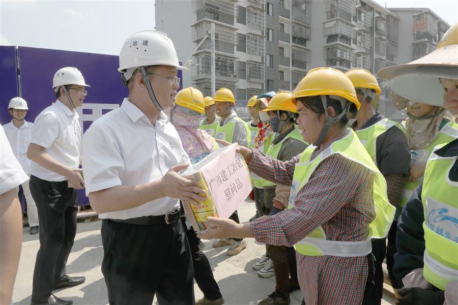 夏日炎炎,高溫不斷,工作不停,節(jié)奏不減。隨著高溫天氣的到來,冶建公司2023年“送清涼”慰問活動正式開啟。7月27日,冶建公司董事長、黨委書記覃振華,帶著清涼慰問品,到第七分公司承建的原柳州市第三棉紡織廠集資建房項目施工現(xiàn)場,慰問持續(xù)戰(zhàn)斗在一線的勞務工人和項目管理人員。