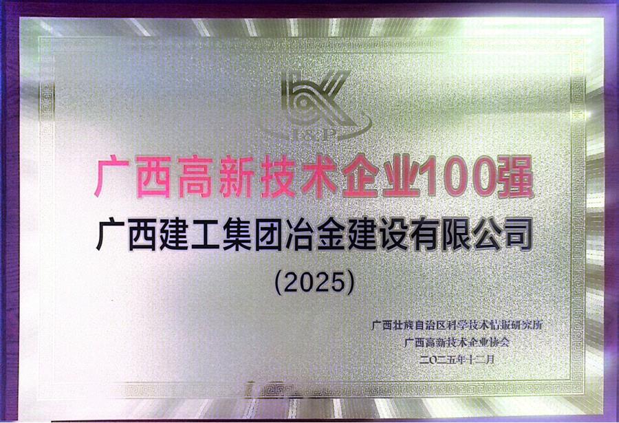 近日,廣西科技情報研究所聯(lián)合廣西高新技術(shù)企業(yè)協(xié)會正式發(fā)布2025年度廣西高新技術(shù)企業(yè)百強(qiáng)系列榜單。冶建公司憑借突出的創(chuàng)新實力、穩(wěn)健的發(fā)展質(zhì)效成功躋身榜單,充分彰顯了公司技術(shù)創(chuàng)新能力、核心競爭力與行業(yè)影響力。